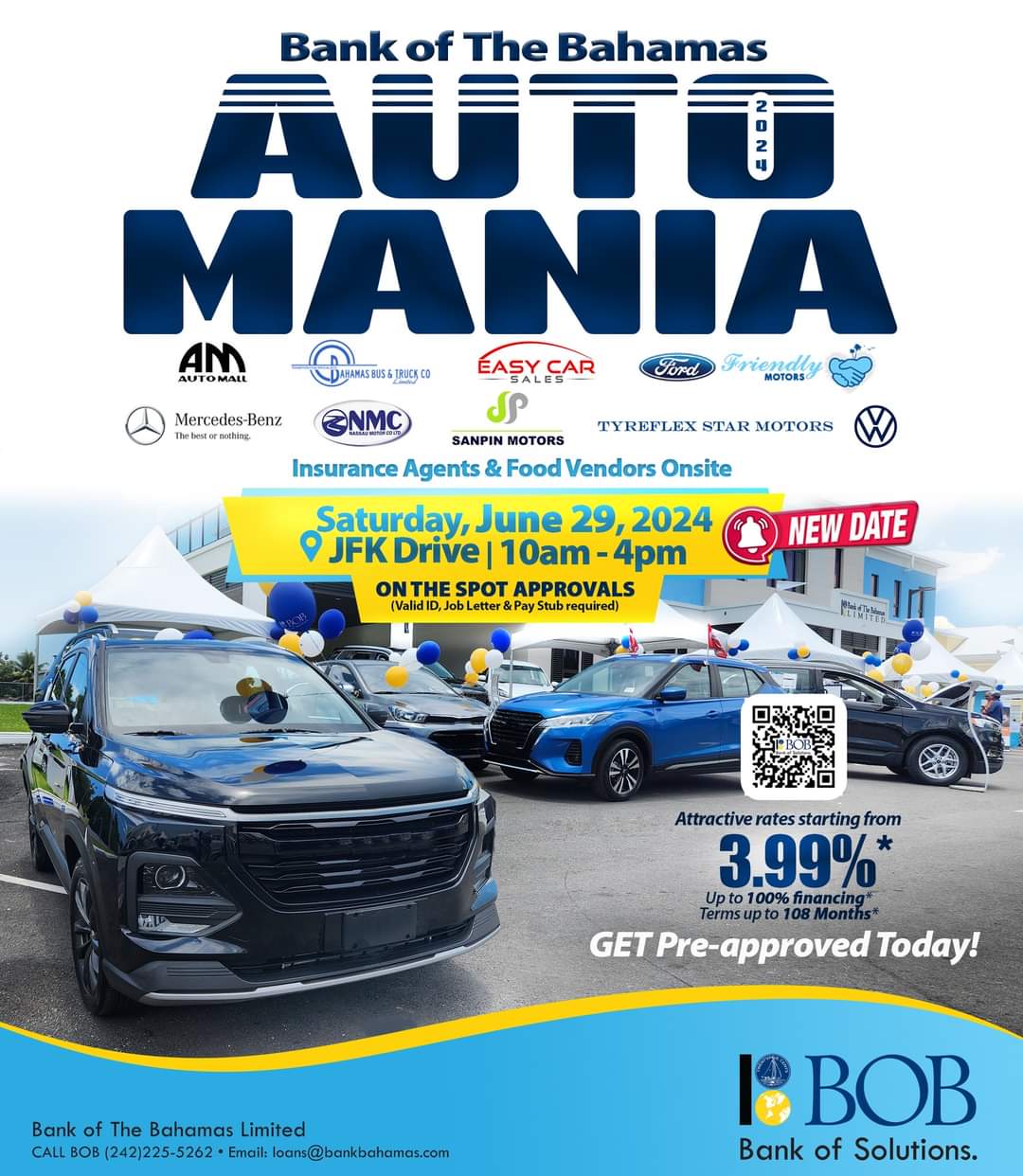 BOB's AUTOMANIA New Car Sales and Loan Event is set for Saturday, June 29, 2024 at BOB’s JFK Drive Branch. Come take advantage of great deals on brand-new vehicles plus super low rates on auto financing with up to 106 months to pay.