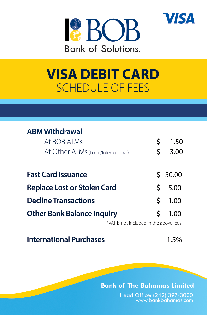 BOB VISA DEBIT CARD FEES